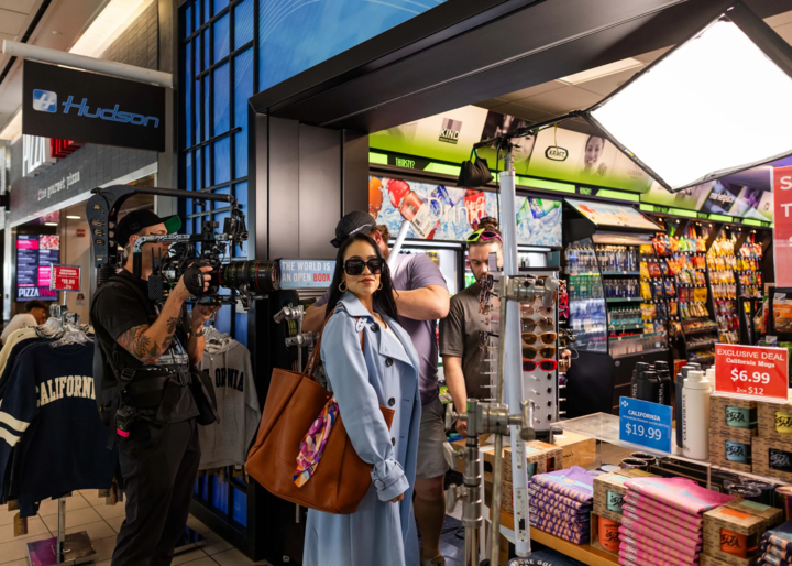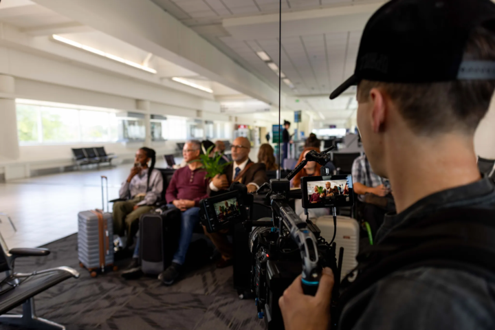 Working within TSA guidelines meant carefully planning what equipment and personnel could go beyond security checkpoints, and scheduling shoot days around live flight activity. Our production team worked closely with ONT to choreograph each scene around the natural rhythm of the airport. To keep production running efficiently, we even built a fully dressed bedroom set on-site for the opening of the concept, “Family,” allowing us to transition seamlessly between locations without losing time.